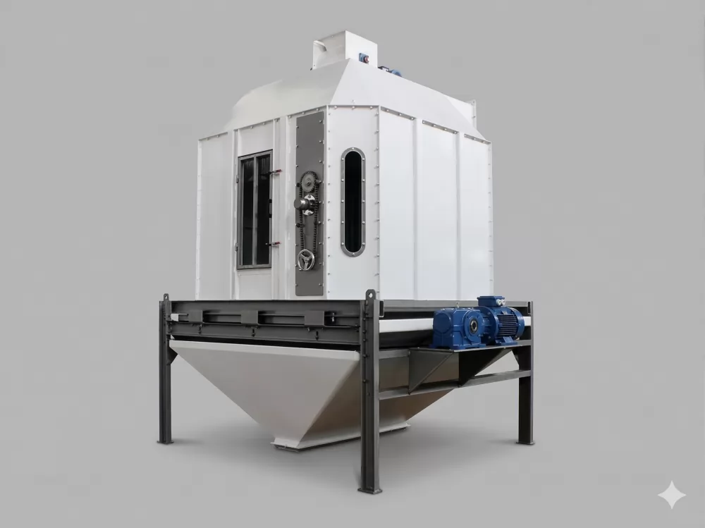 Kabin tipi soğutucu, ekstrüzyon ve kurutma proseslerinden çıkan ürünlerin kontrollü hava akışı ile ortam sıcaklığına düşürülmesini sağlayan kompakt ve verimli bir soğutma sistemidir. Ürün, kapalı kabin içerisinde ilerlerken fanlar aracılığıyla oluşturulan hava sirkülasyonu sayesinde homojen şekilde soğutulur.